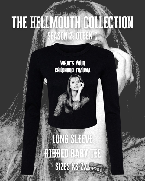 Sunnydale’s reigning queen of confidence returns. Inspired by Cordelia Chase in her prime — sharp, stylish, and absolutely unbothered — this tee immortalises one of her most cutting lines: “What’s your childhood trauma?” A perfect mix of sarcasm and self-assurance, just like the girl herself